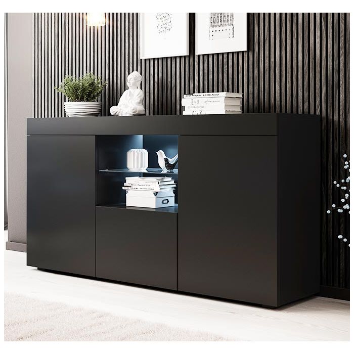 Buffet Salon modèle Natolia couleur noir mate 150 x 83 cm.
