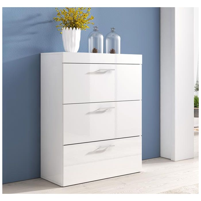 Panneaux de mélamine brillante.Poignées en aluminium satiné.
