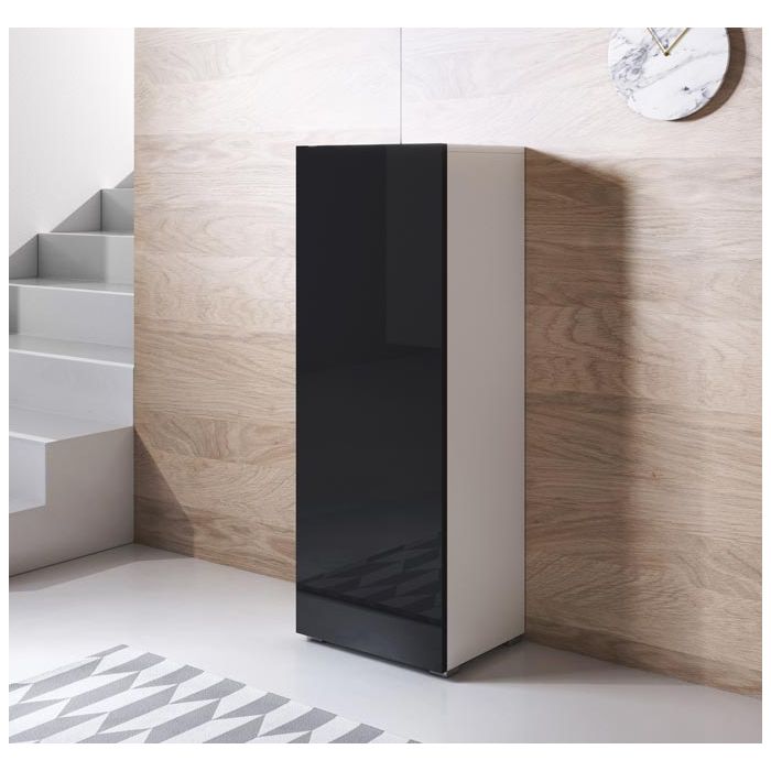 Armoire mural modèle Luke V1 (40x128 cm) couleur blanc et noir avec pieds standard