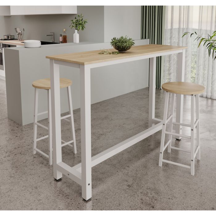 Table haute avec deux tabourets, pratique et jolie, idéale pour les petites cuisines, salles à manger modernes ou espaces type bar. Son design compact prend peu de place et apporte du style à n’importe quel coin. Fabriquée avec des matériaux résistants, elle est parfaite pour les petits-déjeuners, dîners rapides ou cafés. Un ensemble fonctionnel et décoratif qui s’adapte à différents styles. Facile à monter et à entretenir.