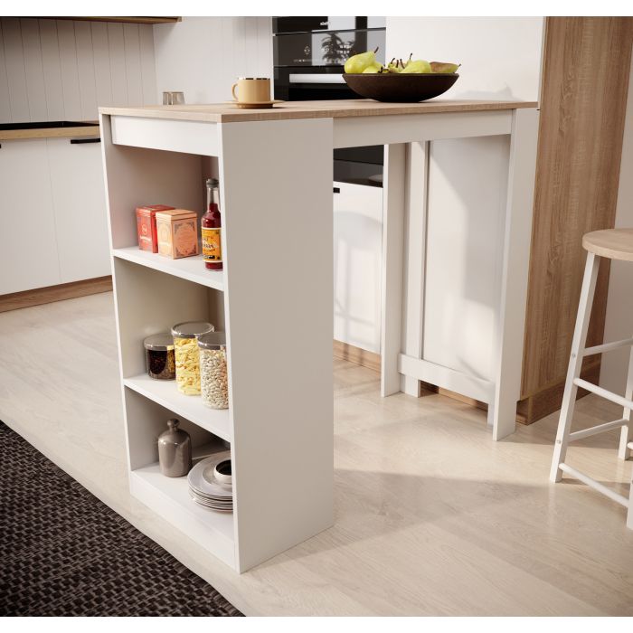 Table haute Kyra (110cm) blanc et sonoma