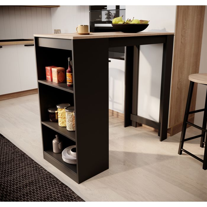 Voici une table haute qui optimise ton espace. Ses lignes épurées et sa finition contemporaine s'adapteront à tous les intérieurs. Tu disposeras d'un endroit confortable pour tes petits déjeuners et repas ou d'un espace informel pour recevoir tes amis. Elle dispose de 3 étagères sur le côté, ce qui vous aidera à gagner de l'espace supplémentaire dans votre maison.