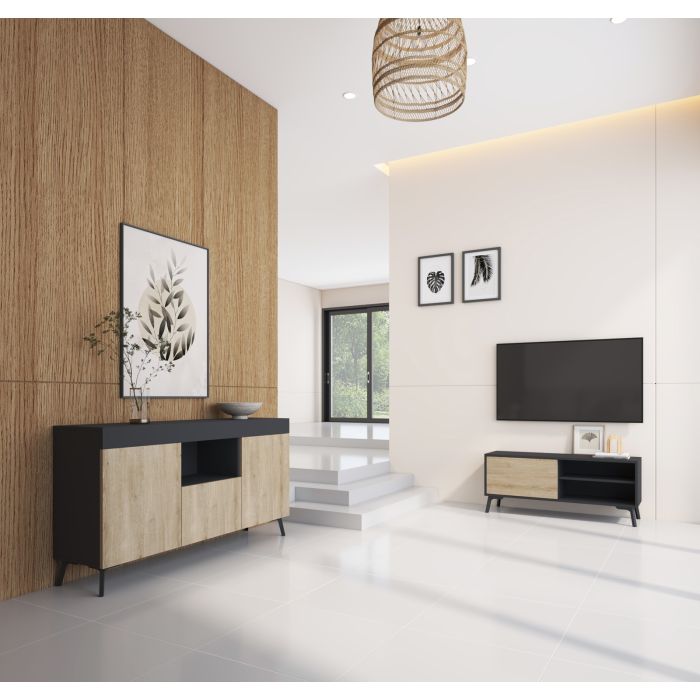 Ensemble de meubles Kai buffet et meuble TV noir et sonoma mate