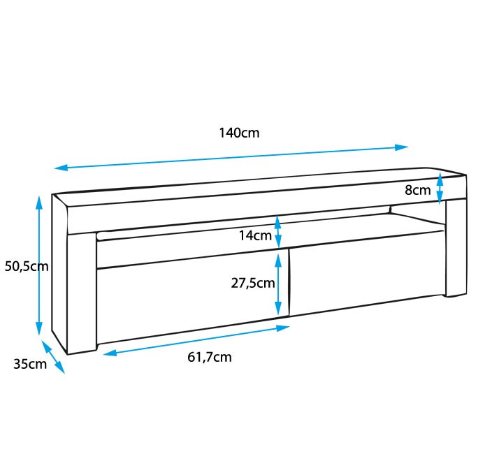 Meuble TV modèle Aker (140x50,5cm) couleur blanc brillant