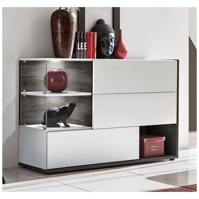 Buffet Salon modèle Odin couleur blanc et gris Sidney brillant