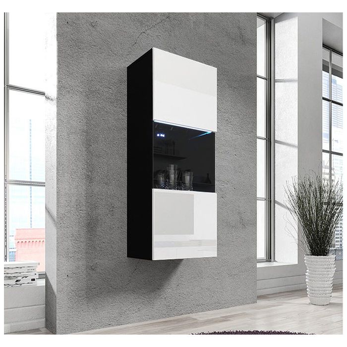 Vitrine murale modèle Nora V3 (40x126cm) couleur noire et blanche