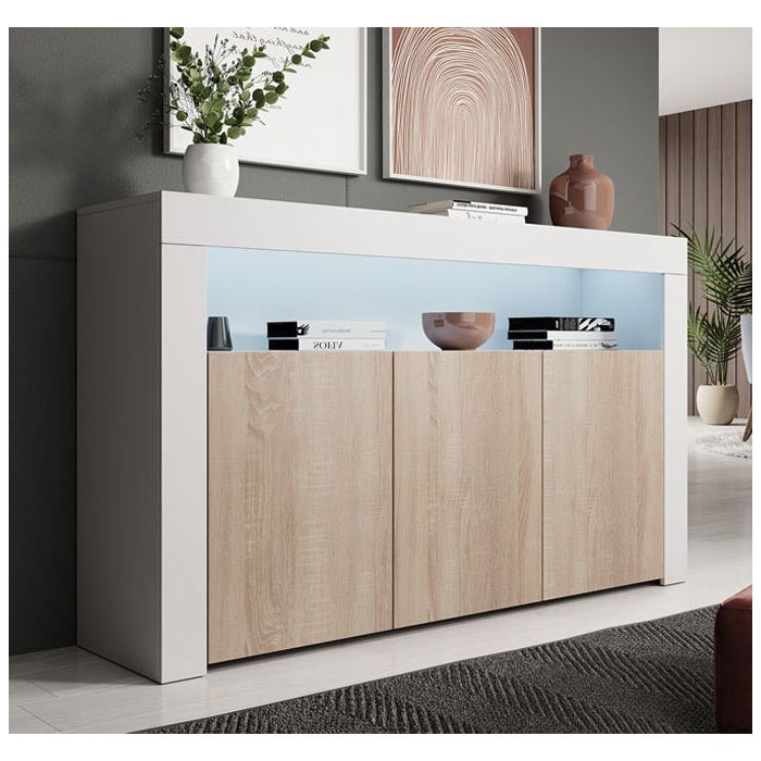 Buffet Salon modèle Aker couleur blanc et sonoma mat