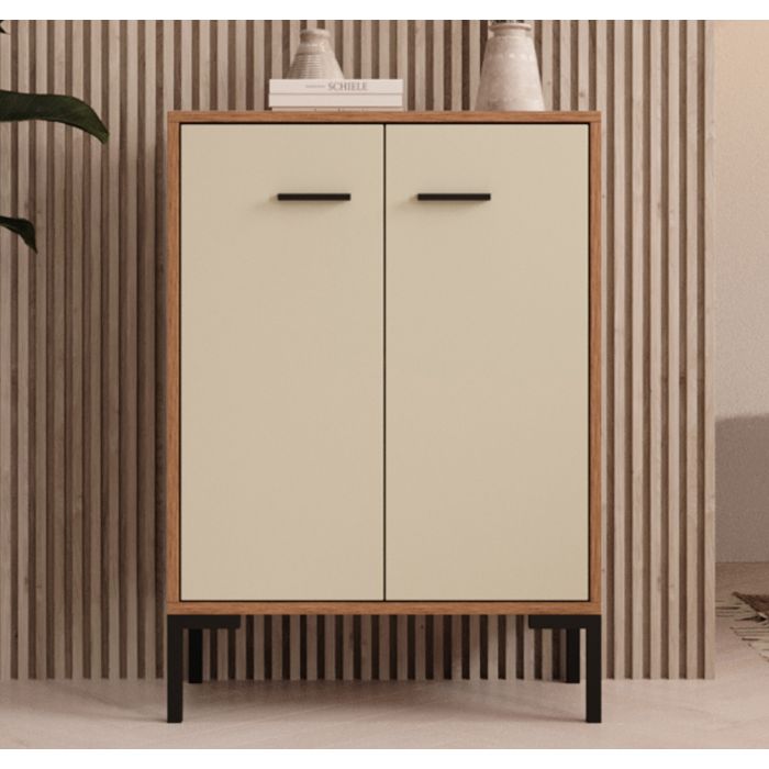 Buffet bas couleur Noyer Ambar et Beige 84 cm Lander L15