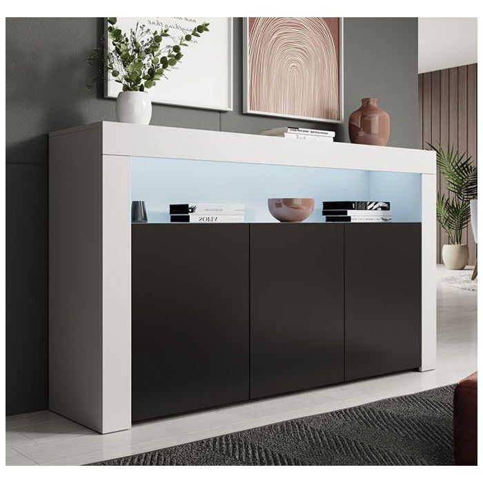 Buffet Salon modèle Aker couleur blanc et noir mat