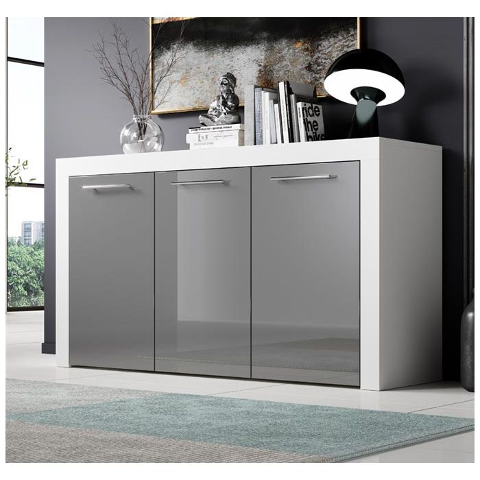 Buffet Salon modèle Nelia couleur blanc et gris brillant