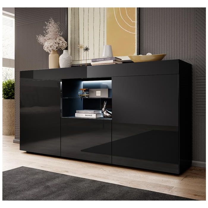 Buffet Salon modèle Sefora couleur noir brillant 135x72cm.