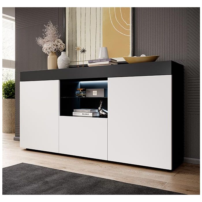 Buffet Salon modèle Sefora couleur noir et blanc mate 135x73cm.