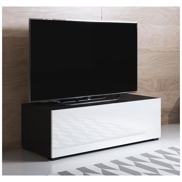 Meuble TV modèle Luke H1 (100x32cm) couleur noir et blanc brillant avec pieds standard