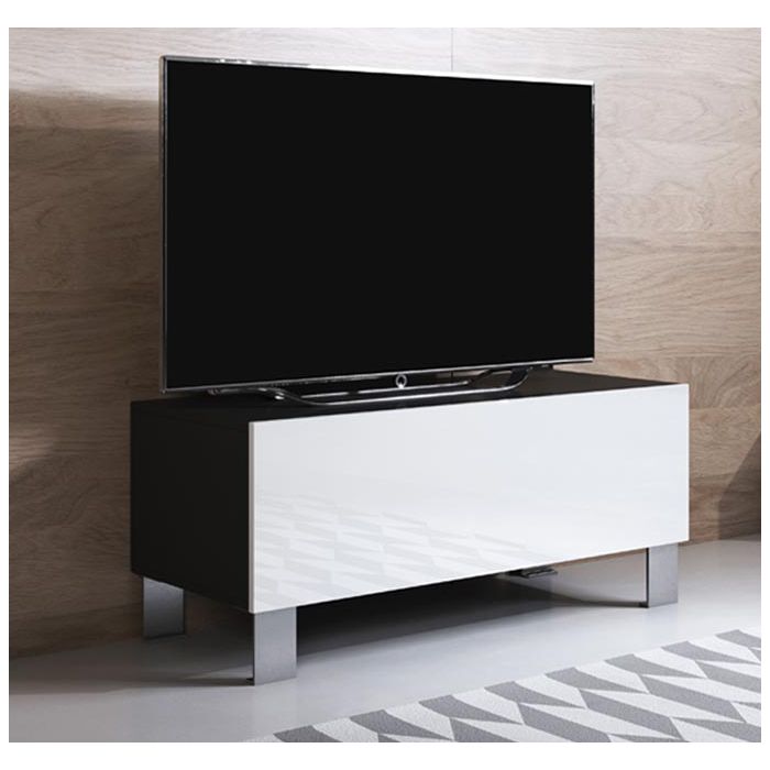 Meuble TV modèle Luke H1 (100x42cm) couleur noir et blanc brillant avec pieds en aluminium