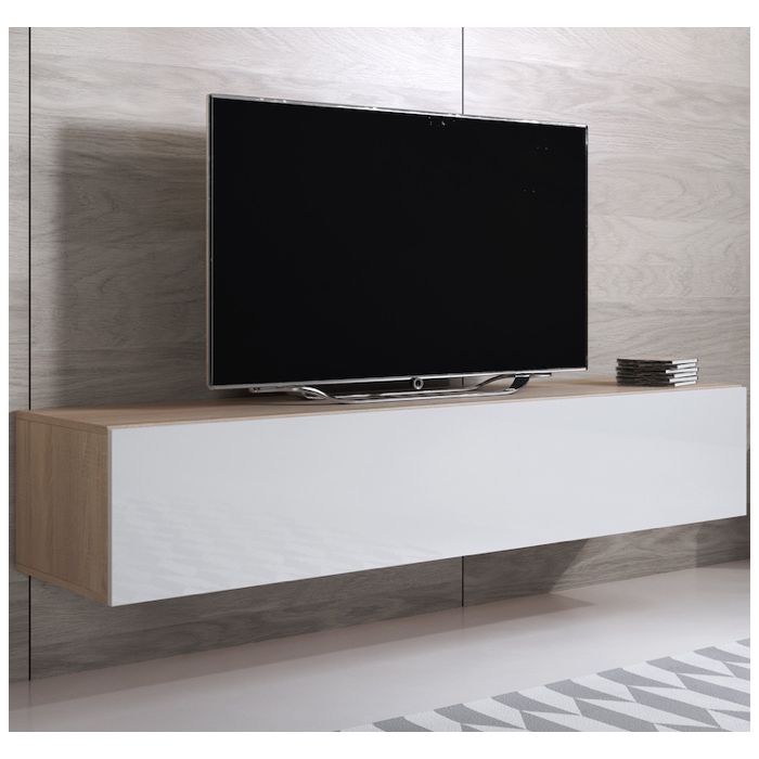 Meuble TV modèle Luke H2 (160x30cm) couleur sonoma et blanc brillant