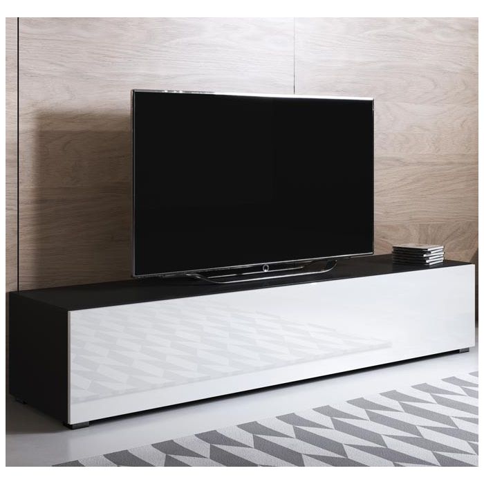 Meuble TV modèle Luke H2 (160x32cm) couleur noir et blanc brillant avec pieds standard