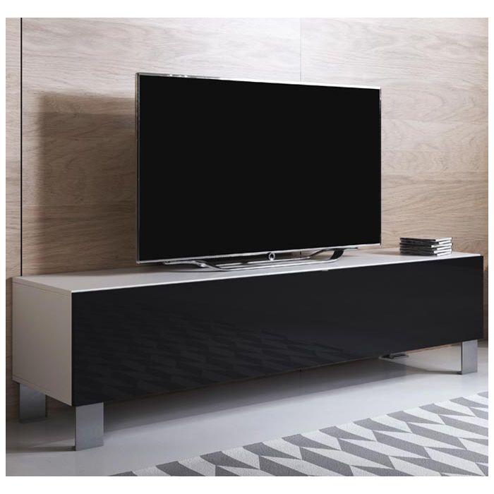 Meuble TV modèle Luke H2 (160x42cm) couleur blanc et noir brillant avec pieds en aluminium