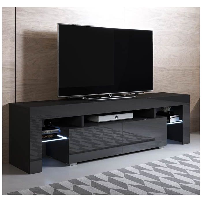Meuble TV modèle Unai (160x45cm) couleur noir avec LED RGB