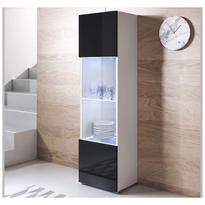 Vitrine modèle Luke V6 (40x167cm) couleur blanc et noir avec pieds standard