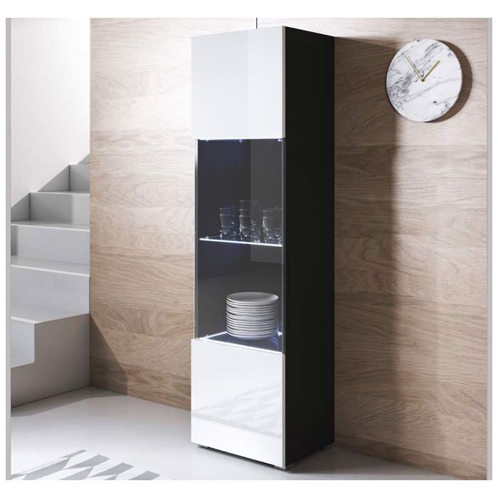 Vitrine modèle Luke V6 (40x167cm) couleur noir et blanc avec pieds standard