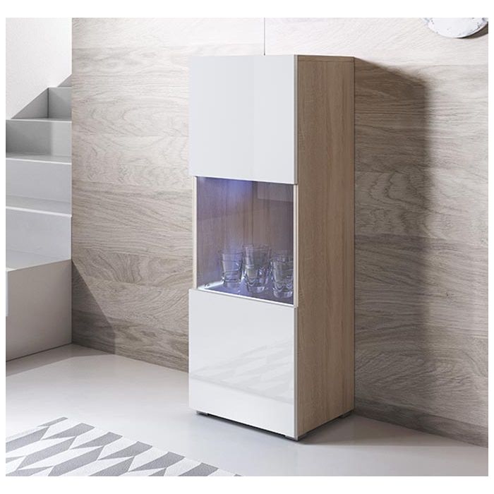 Vitrina modelo Luke V3 (40x128cm) color sonoma y blanco con patas estándar