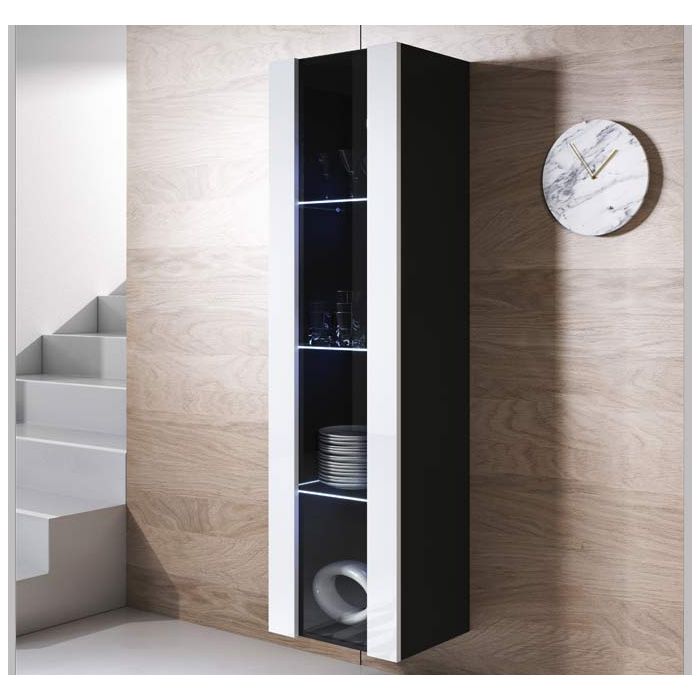 Vitrine murale modèle Luke V5 (40x165cm) couleur noir et blanc