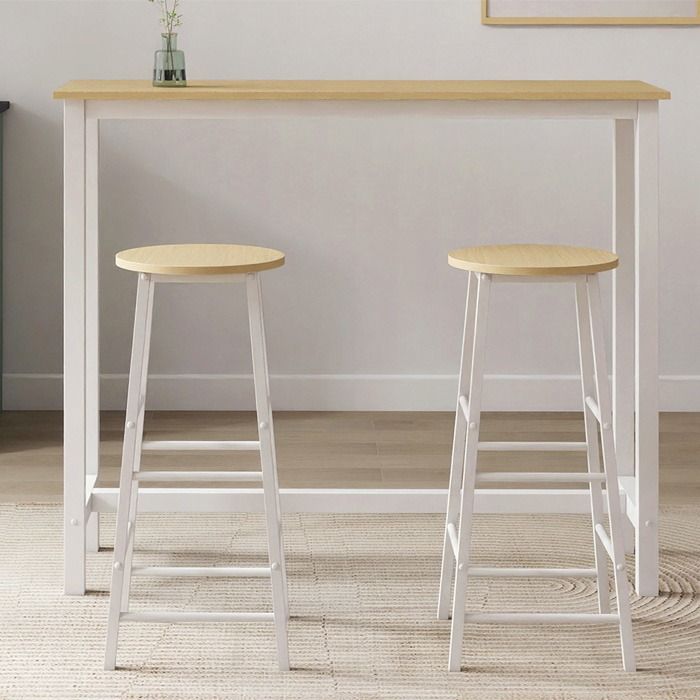 Table haute avec 2 Tabourets Blanc et Sonoma 100 cm Ani