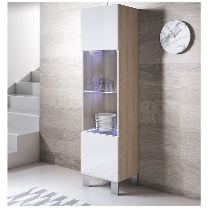 Vitrina modelo Luke V6 (40x177cm) color sonoma y blanco con patas de aluminio