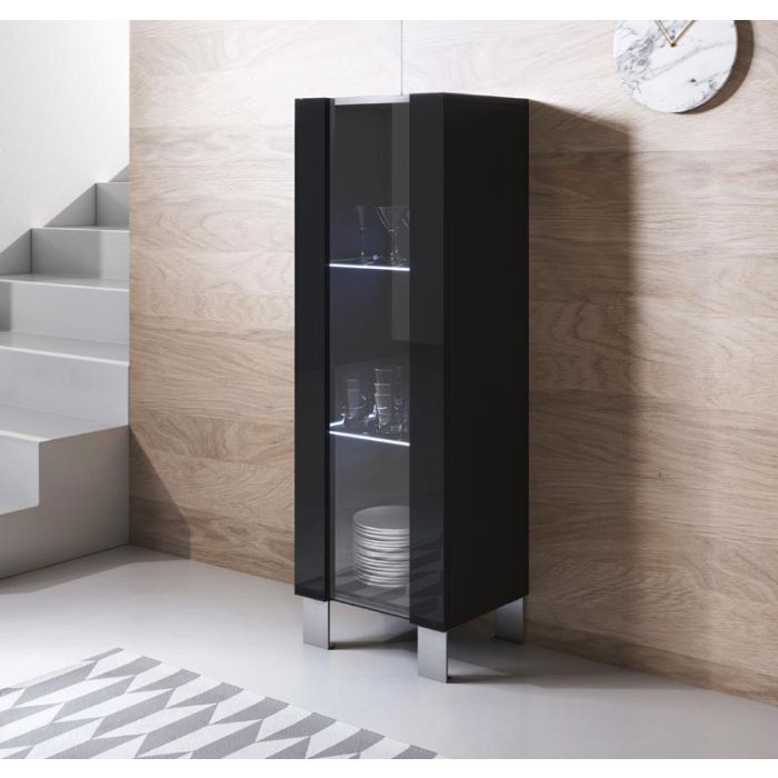 Vitrine modèle Luke V2 (40x138cm) couleur noir avec pieds en aluminium