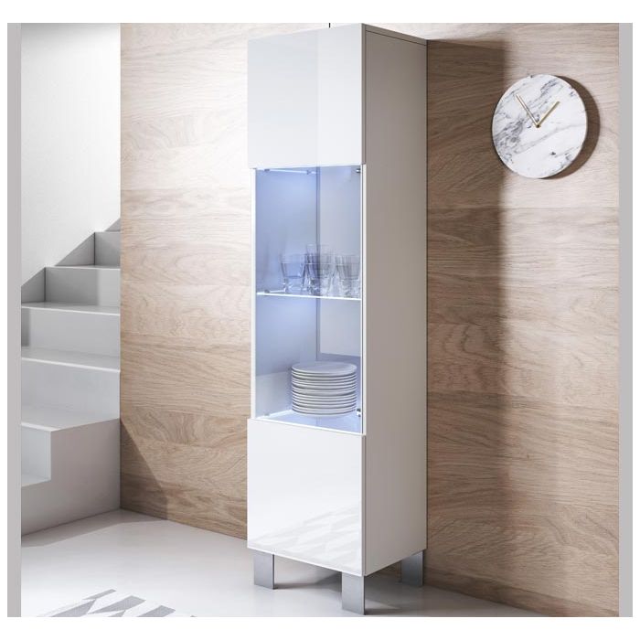 Vitrine modèle Luke V6 (40x177cm) couleur blanc avec pieds en aluminium